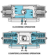 For counter-clockwise operation, Port 1 is open to atmosphere and air pressure is directed to Port 2.